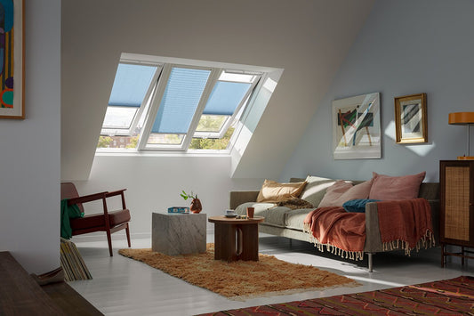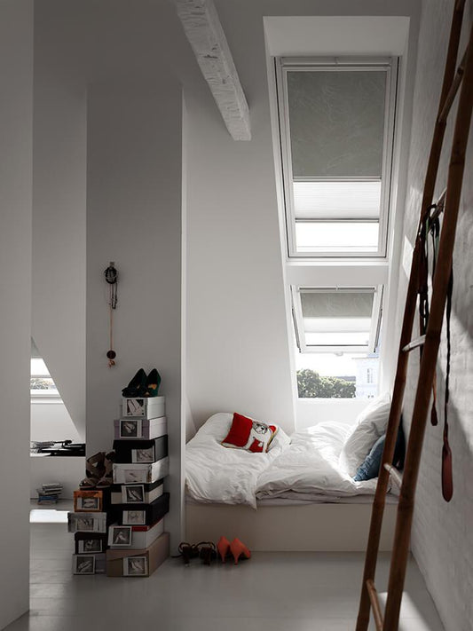 Pimentävät kaksinkertaiset VELUX-taiteverhot kattoikkunaan