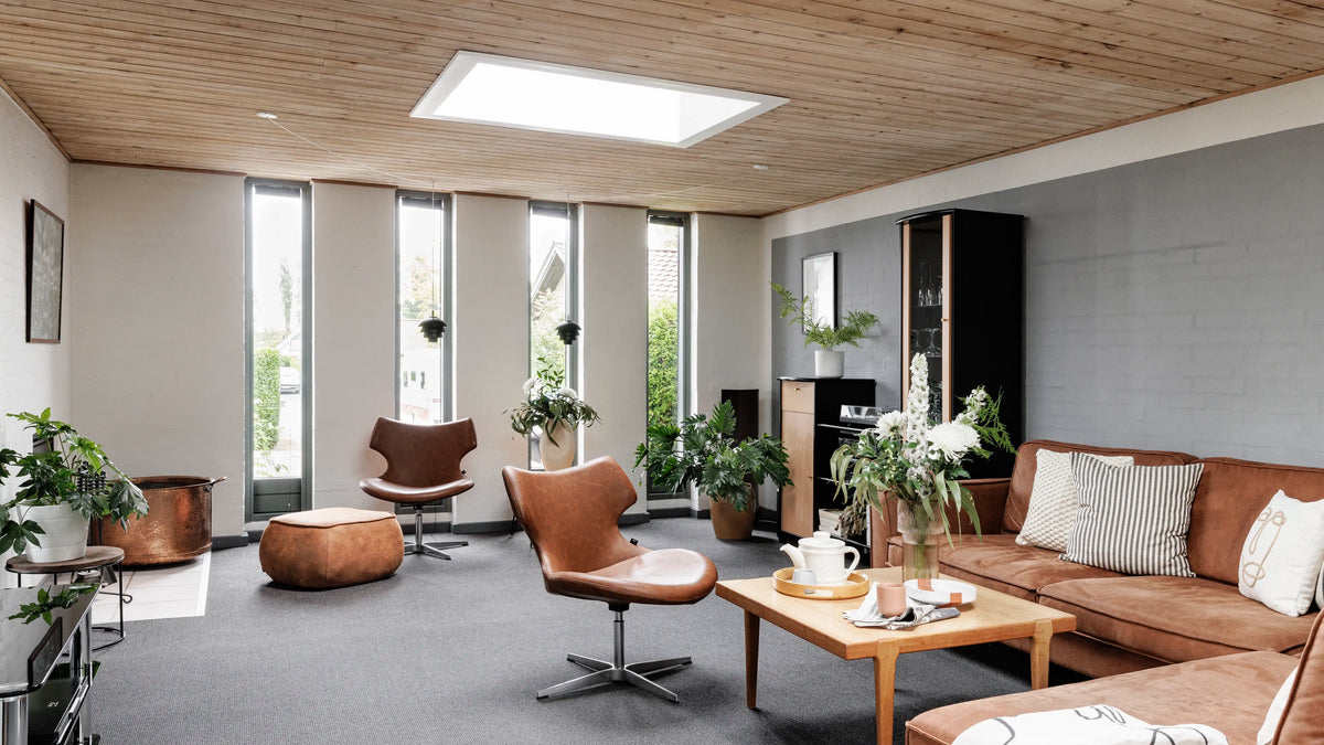 Tyylikäs reunaan reunasta ulottuva lasi sekä suorat linjat sulautuvat yhteen katon kanssa. Ohut karmi ja näkymätön puite varmistavat maksimaalisen päivänvalon pääsyn sisään ja sisäpuolen kauniin muotoilun – jopa verho asennettuna.